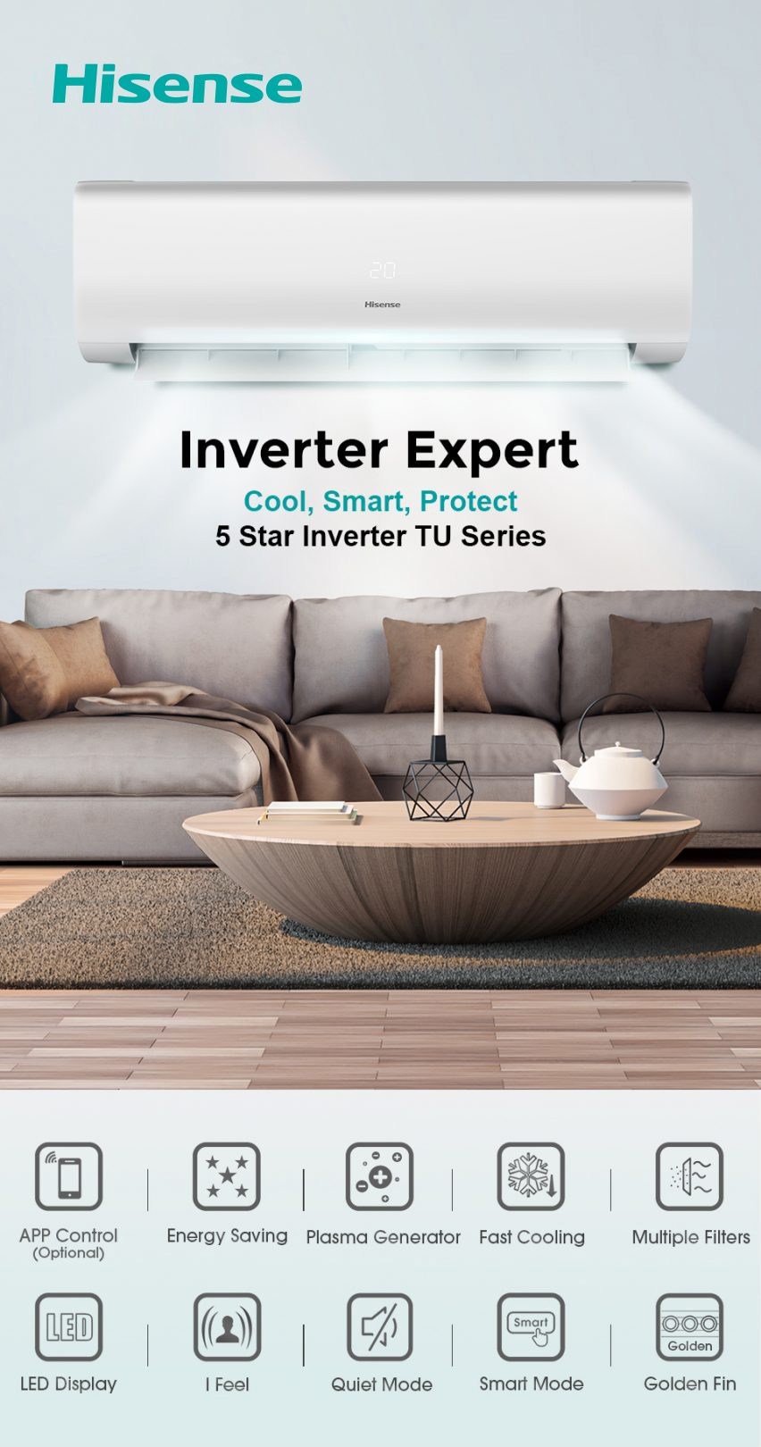 𝟓 𝐒𝐓𝐀𝐑* HISENSE Air Cond Inverter 1.5hp AI13TUGS R32